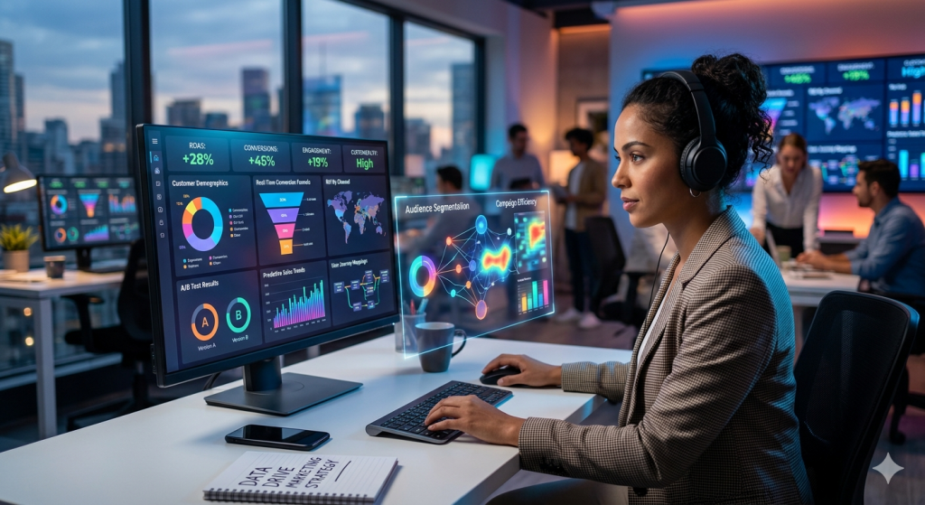 Con el análisis de datos, el panorama a cambiado muchisimo. Ahora puedes saber exactamente cuántas personas vieron un anuncio, cuántas hicieron clic y cuántas terminaron comprando. Esta trazabilidad quita la incertidumbre y permite que el dinero se ponga en los sitios que de verdad dan resultados.