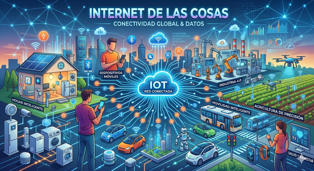 Pero, ¿que es realmente el IoT? Básicamente, es la interconexión digital de objetos cotidianos con internet. O sea, cosas que antes eran «tontas» (una cafetera, un reloj, un termostato) ahora tienen sensores, procesadores y estan mandando datos a la nube todo el rato. Y esto, aunque no lo parezca, esta cambiando nuestra rutina de una forma radical.