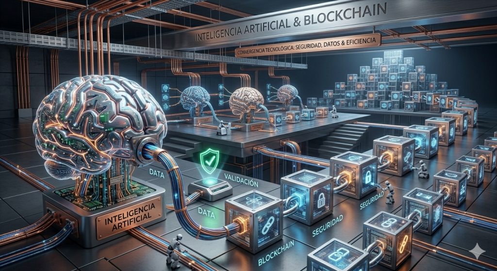 Por un lado, tienes a la Inteligencia Artificial (IA), que básicamente es ese cerebro digital que aprende solo y que ya nos ayuda a escribir correos o a retocar fotos. Por otro, tienes al Blockchain, que para muchos sigue siendo «lo de las criptomonedas», pero que en realidad es una forma de guardar datos que nadie puede borrar ni manipular.